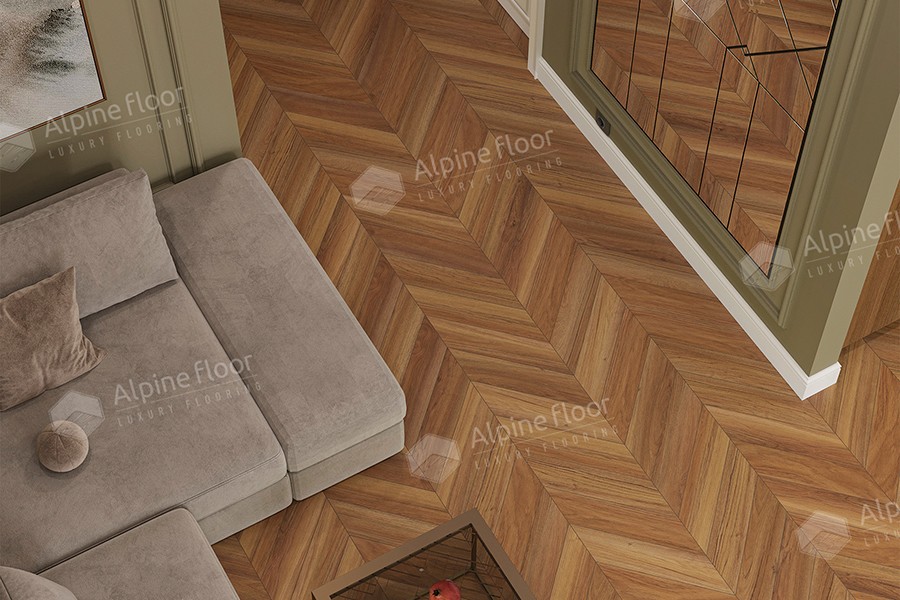 Ламинат LF109-08 Дуб Этна Alpine Floor коллекция Chevron Art французская елочка, собирается замковым способом без крепления к основания, имеет удобный замок 5G для быстрой и удобной сборки, торцы обработаны воском для увеличения влагостойкости, тиснение в регистр точно имитирует фактуру дерева, ультра матовая поверхность подчеркнет красоту пола.
